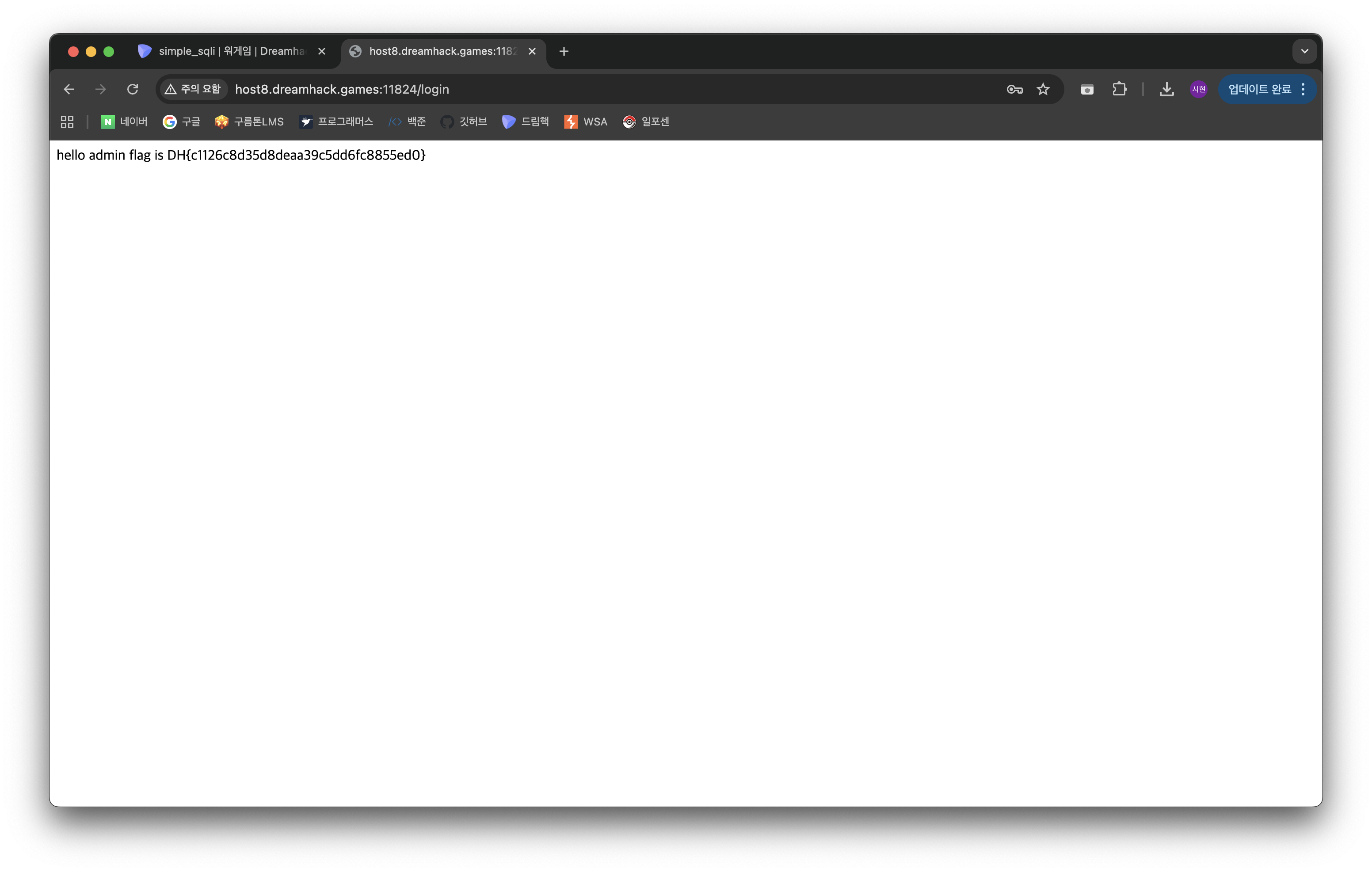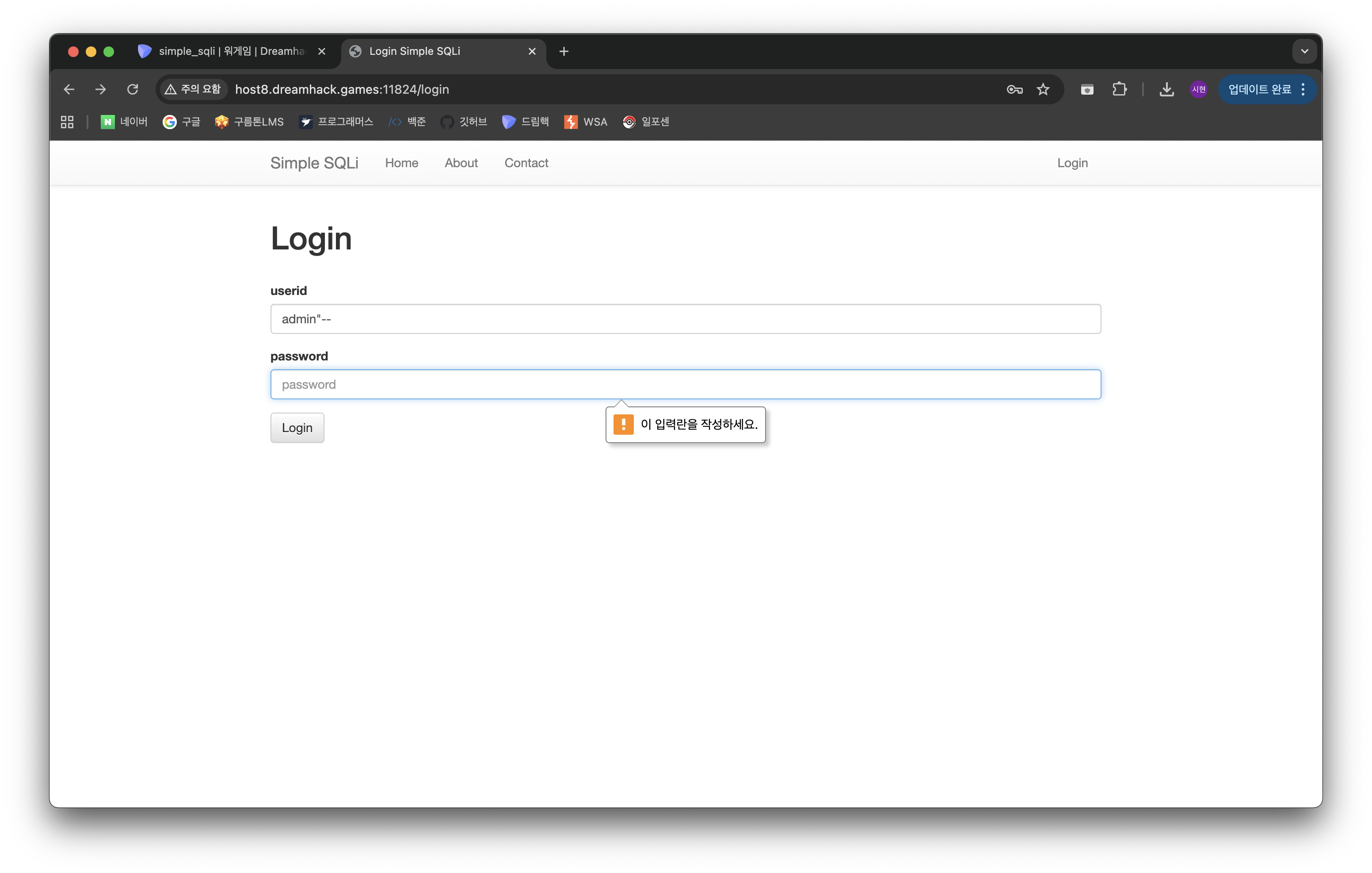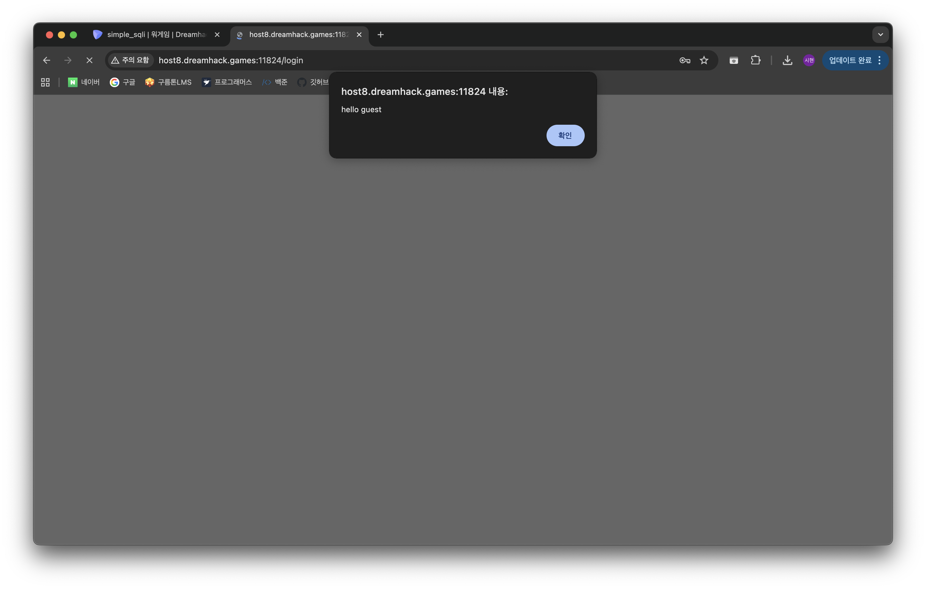 비밀번호 인증 부분을 없애버려 로그인에 성공했다! 끗