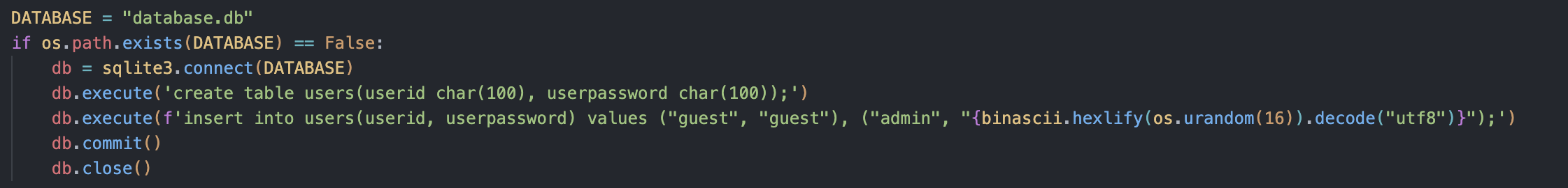 데이터베이스에 비밀번호가 guest인 guest유저와 비밀번호가 랜덤 헥사 16바이트인 admin 유저가 있다.