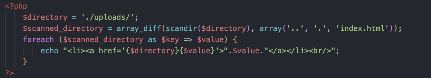 list.php에는 uploads의 파일을 스캔하는 코드가 있다.