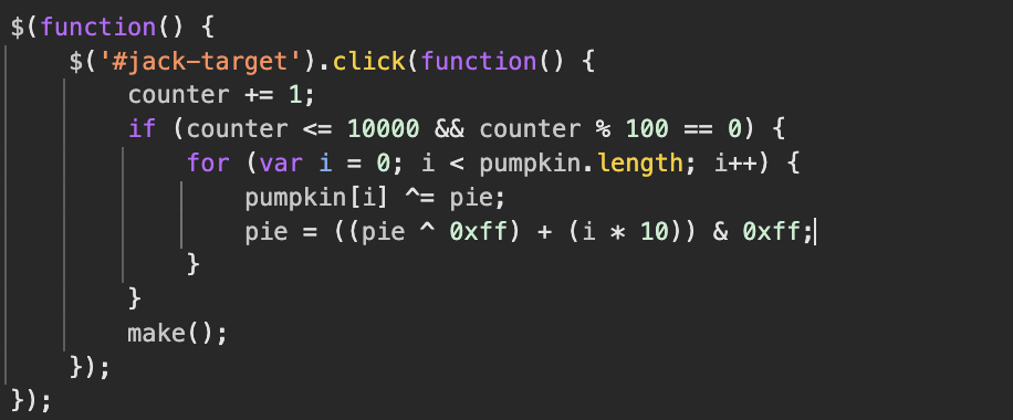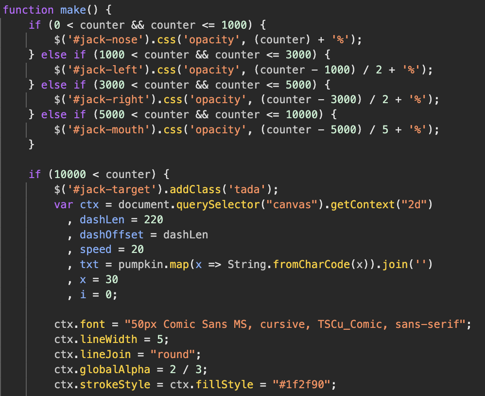 make 함수에 counter가 점점 오를 때마다 호박의 눈,코,입이 생성되는 로직이 보인다.