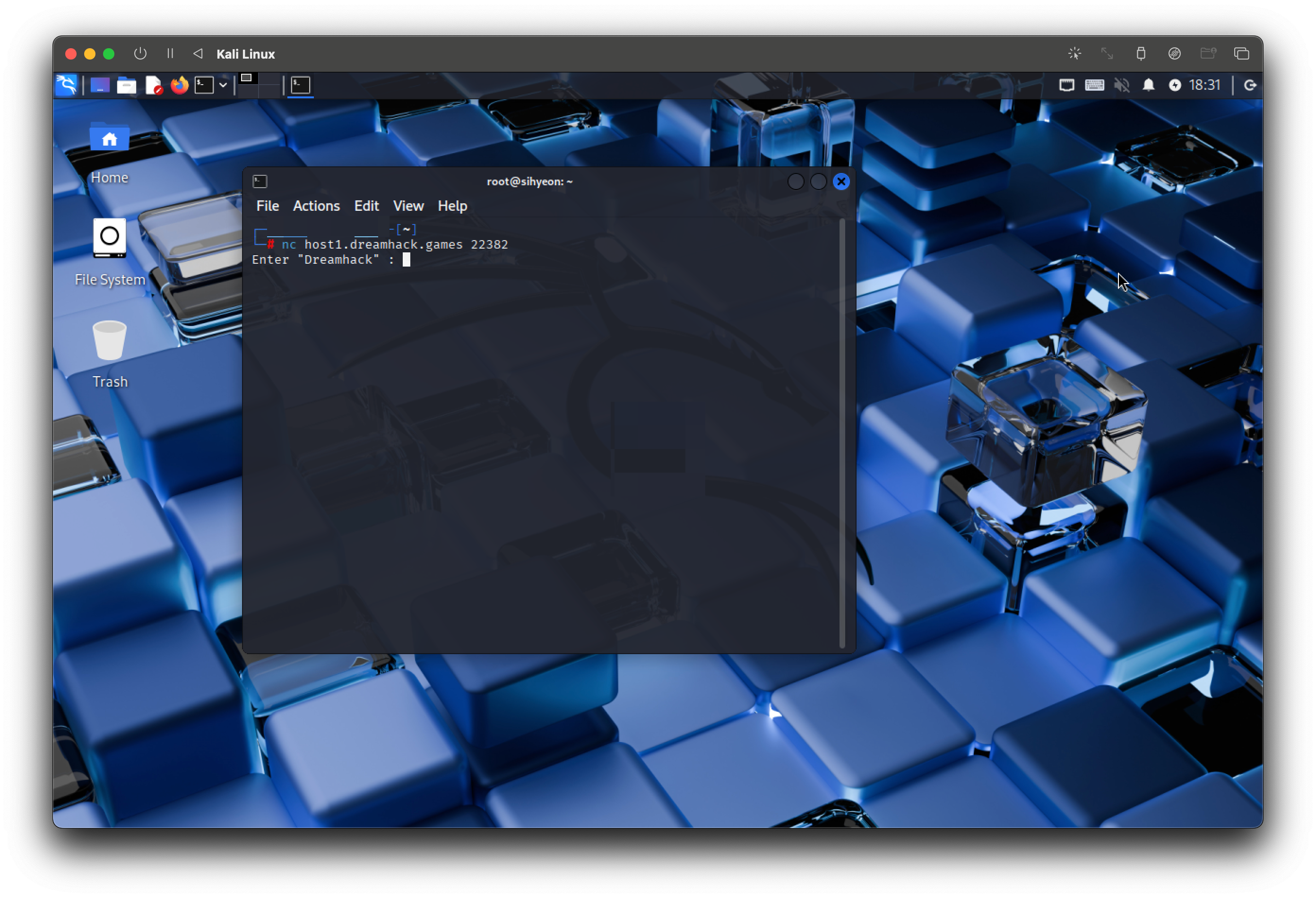 Wargame 실습을 위한 문제입니다. "Dreamhack"을 입력하여 플래그를 획득하세요!