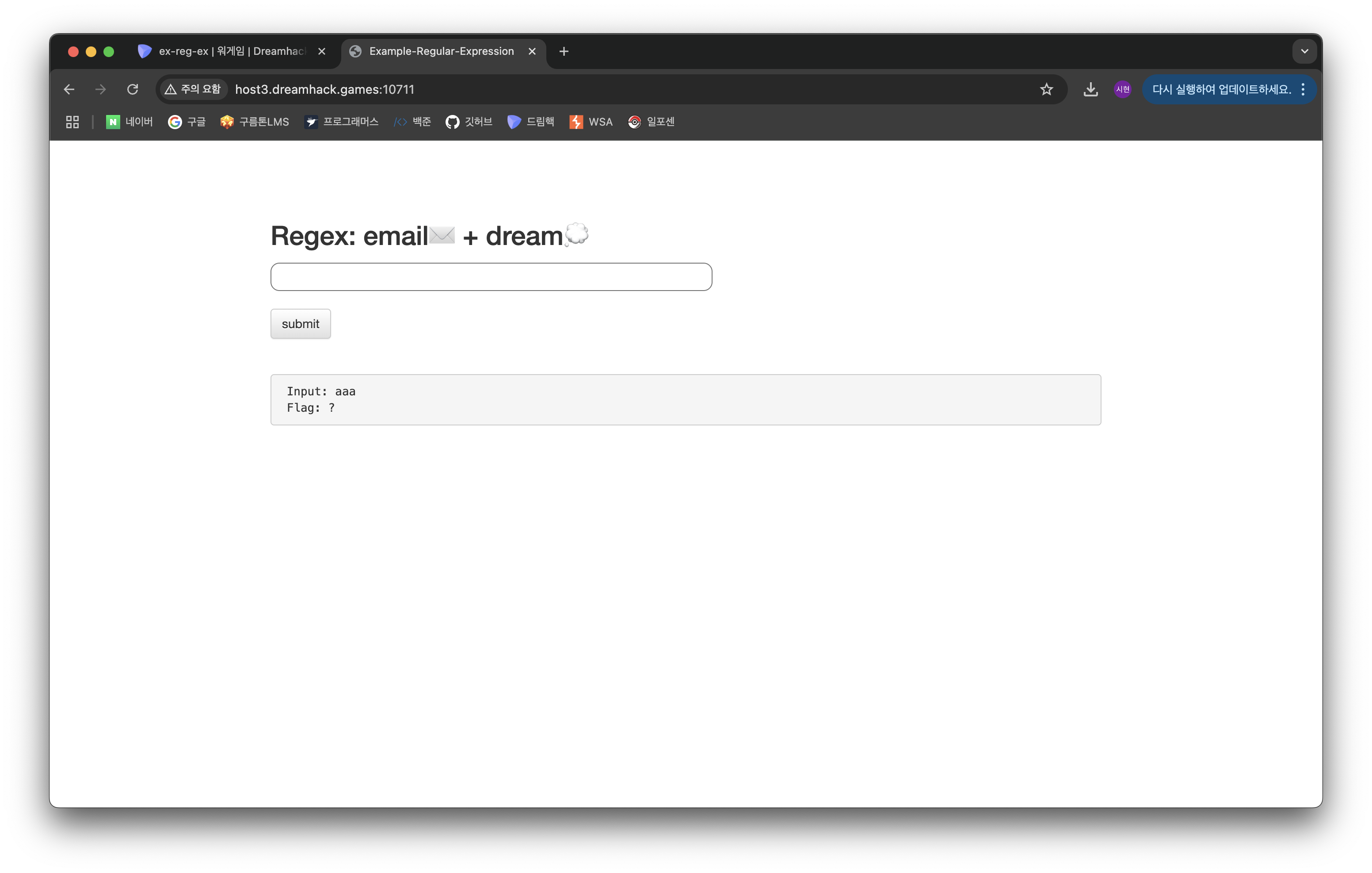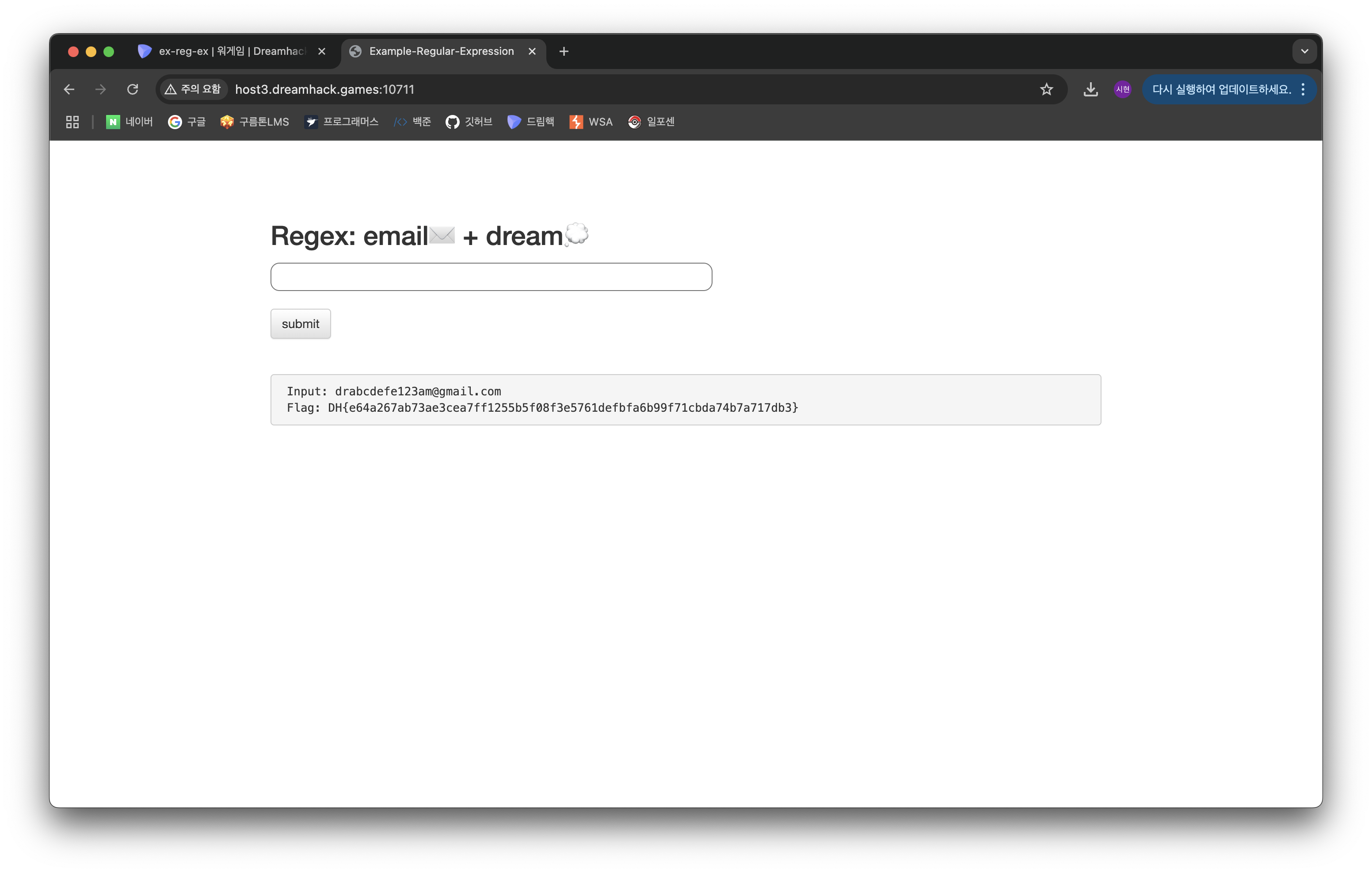 정규 표현식에 맞는 다른 문자열을 넣어도 flag가 잘 출력된다.