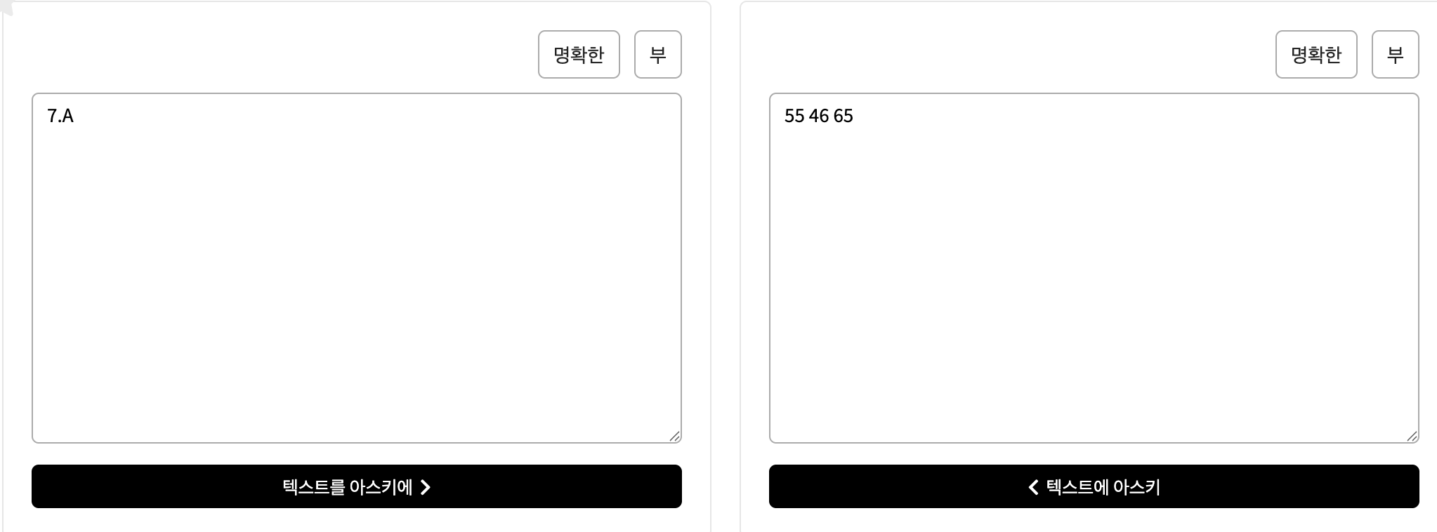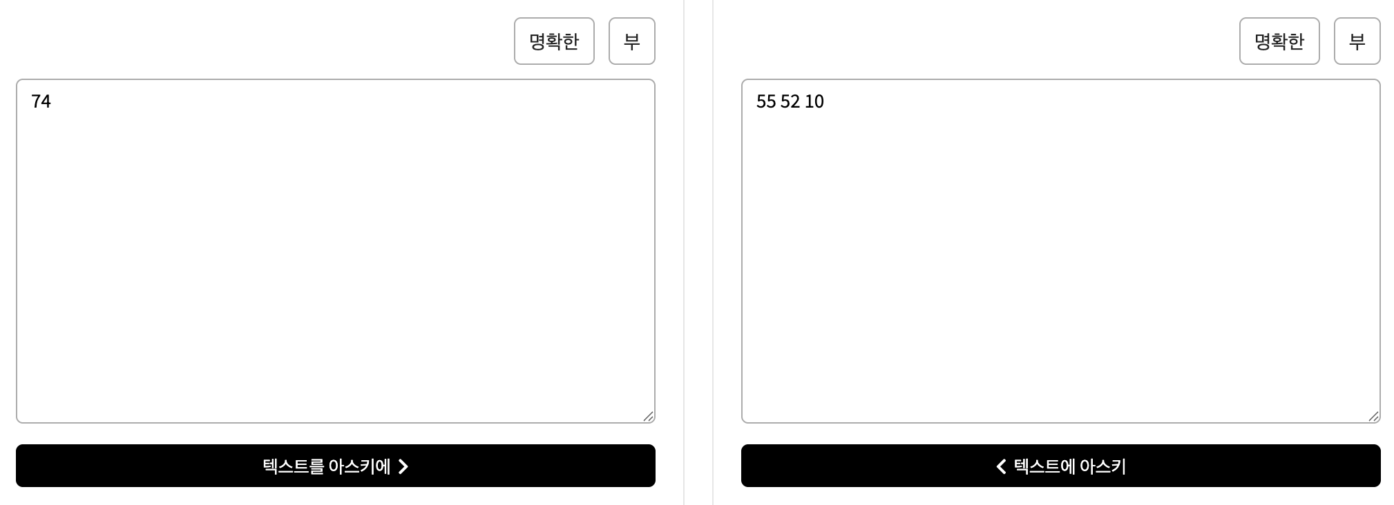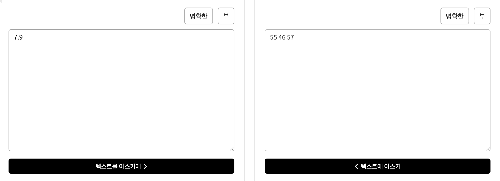 아스키 코드가 숫자로 변환되면 안되고, 문자로 변환되어야할 것 같다.